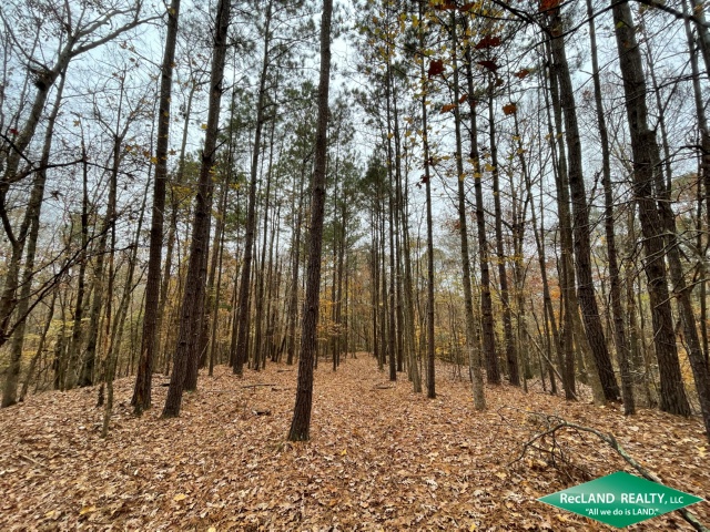 This timberland and recreational tract is situated off a dead-end road in the Calhoun area. The property has high, rolling ground with a mix of pine and upland hardwoods along the south end of the tract. This is the area that could be suitable for a secluded, large-acreage home site.