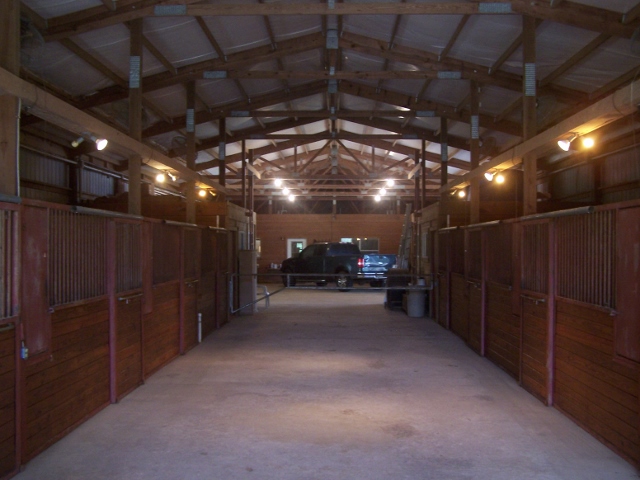 Adjacent to the stalls there is a feed room, a tack/storage room, and an unfinished ¾ bath with a working shower and sink. Ladders lead the way to 2 lofts for additional storage.